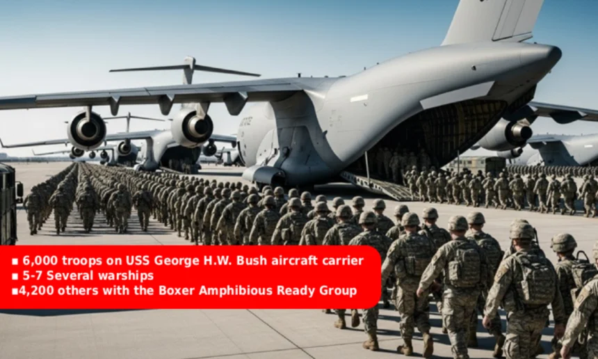 رپورٹ کے مطابق یو ایس ایس جارج ایچ ڈبلیو بش طیارہ بردار بحری جہاز پر تقریباً 6,000 فوجی موجود ہیں، جبکہ اس کے ساتھ متعدد جنگی بحری جہاز بھی خطے میں تعینات کیے جا رہے ہیں۔